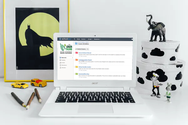 In addition to an introductory video created by a member of the group, our completed course was presented via a letter from the principal of our fictitious green initiative school with instructions on how to access the course.